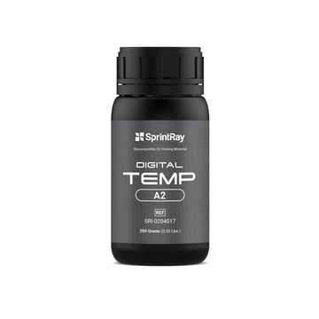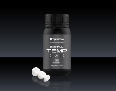 SprintRay Digital Temp is an FDA 510(k) cleared, biocompatible light-curable resin designed for temporary full single crowns, partial crowns, and bridges.